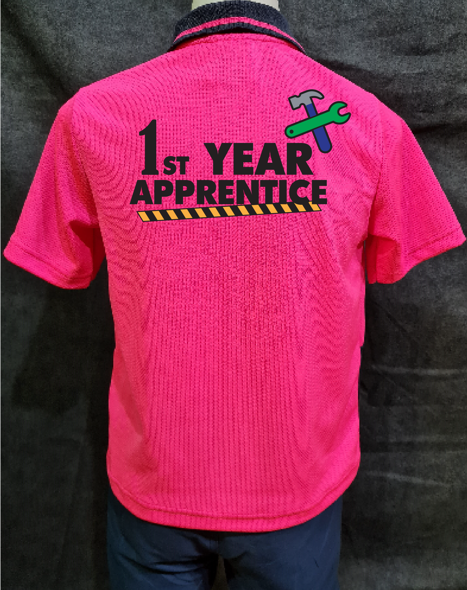 By being made to the highest quality with a resilient, washable print. Tailored for the Australian climate, the breathable fabric also provides UPF protection. Vibrantly dyed the brightest high visibility yellow, orange and pink each shirt features a navy dust panel & a front pocket so ‘Dad’s Apprentice’ can look just like dad.