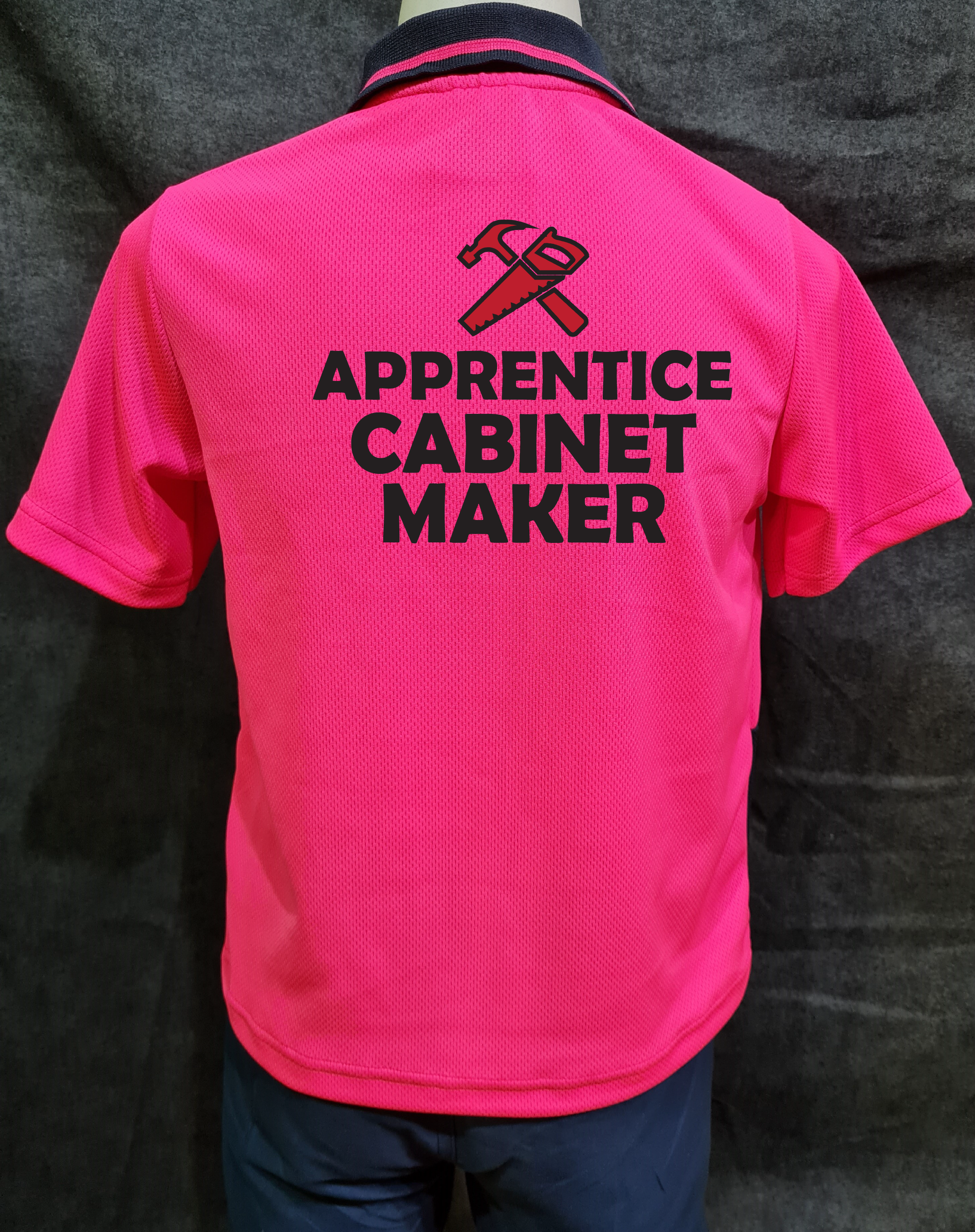 By being made to the highest quality with a resilient, washable print. Tailored for the Australian climate, the breathable fabric also provides UPF protection. Vibrantly dyed the brightest high visibility yellow, orange and pink each shirt features a navy dust panel & a front pocket so ‘Dad’s Apprentice’ can look just like dad.