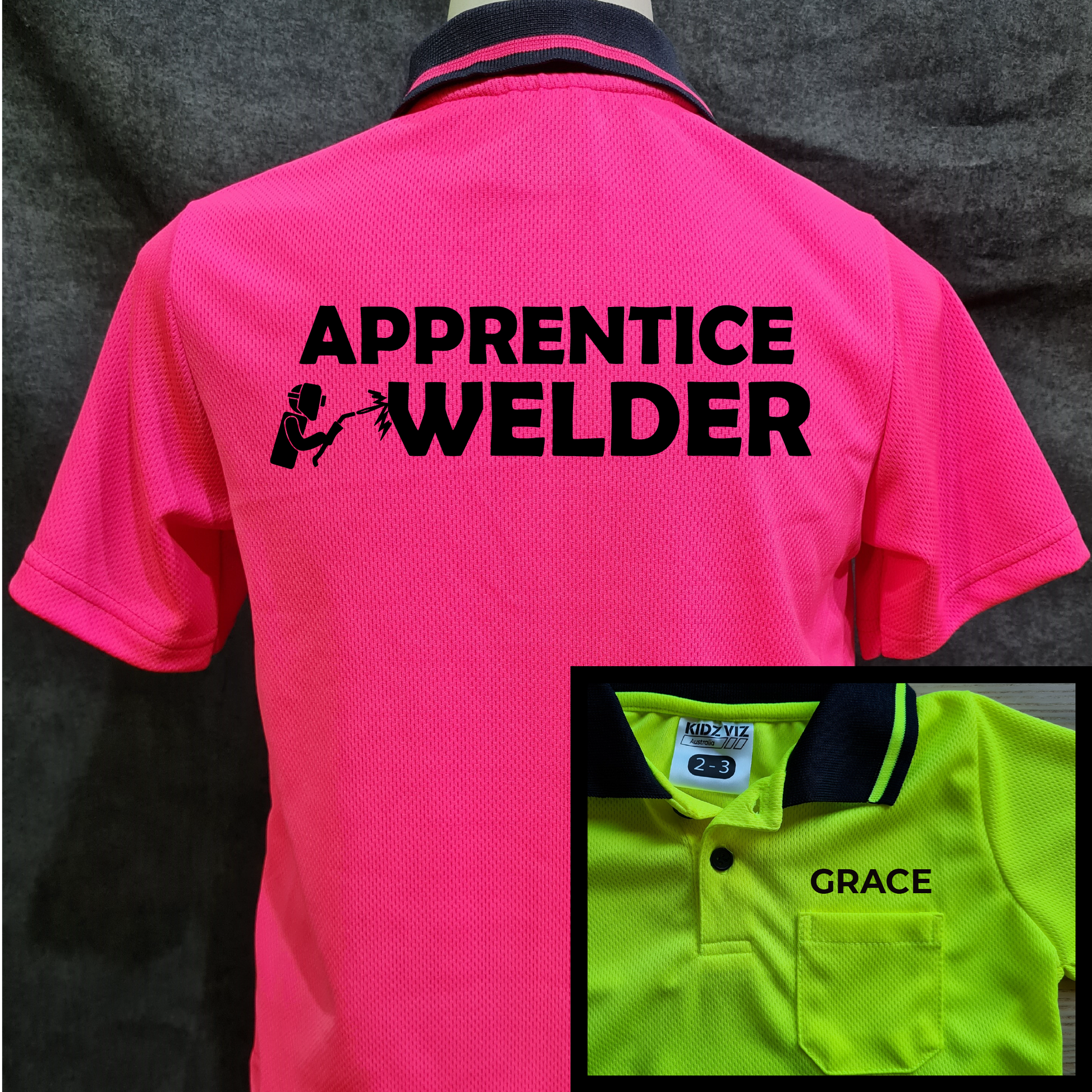 Australia’s leading brand of kids hi-vis tradie polo shirts for ‘Dad’s Boss’, ‘Pop’s Helper’ or the ‘1st Year Apprentice’. With over 30+ designs to choose from (and custom designs available) you’re sure to find the perfect shirt for the ‘Little Sparky’ or ‘Farm Hand’ in your family. These professionally screen printed designs were created right here in Australia.
