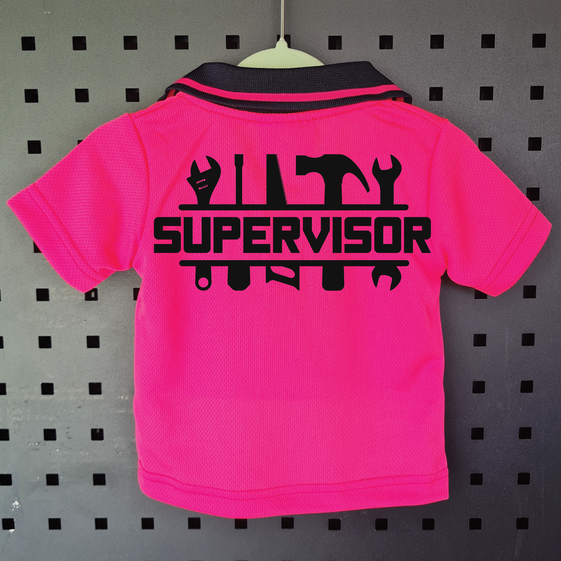Australia’s leading brand of kids hi-vis tradie polo shirts for ‘Dad’s Boss’, ‘Pop’s Helper’ or the ‘1st Year Apprentice’. With over 30+ designs to choose from (and custom designs available) you’re sure to find the perfect shirt for the ‘Little Sparky’ or ‘Farm Hand’ in your family. These professionally screen printed designs were created right here in Australia.